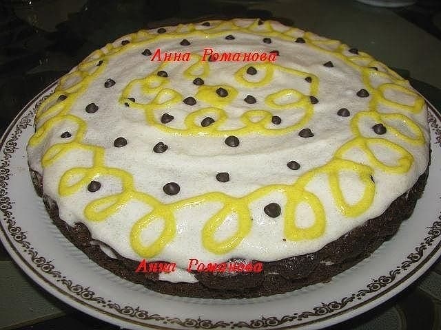 Я украсила кремом с красителем и сверху посыпала шоколадными каплями.