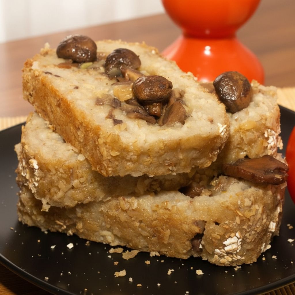 Запечённый овсяный рулет с грибной начинкой